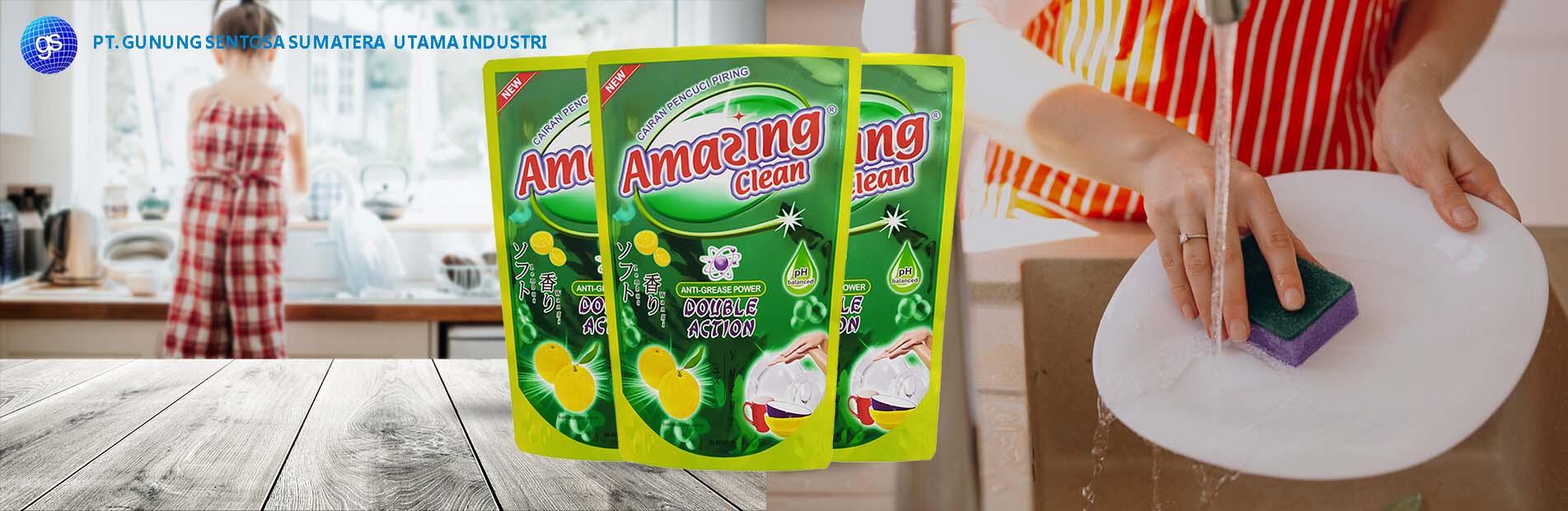 Amasing Clean Pencuci Piring juga dilengkapi dengan anti-bacterial agent yang dapat membunuh kuman dan menghambat pertumbuhan sel bakteri pada piring dan peralatan dapur lainnya, dengan ph yang aman untuk kulit tangan.